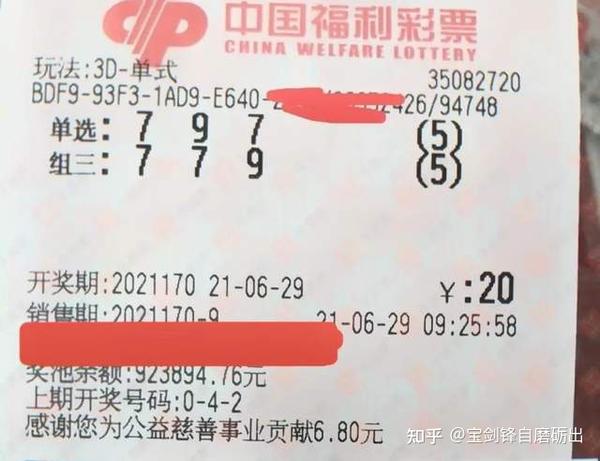 首先我们来欣赏一下福彩3D170期的晒票:
